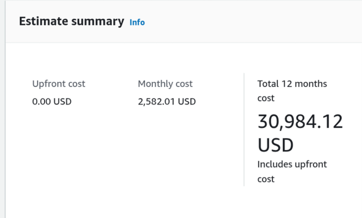 The cost estimate of $7,948/month is artificially inflated due to a configuration error in the AWS Calculator.
