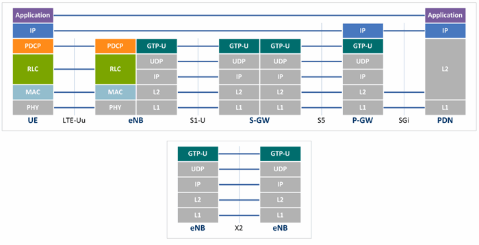 Once your data reaches the eNB, it is “wired.” The protocols here focus on “tunneling” your data so it reaches the right destination while you are moving.